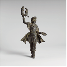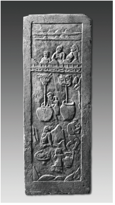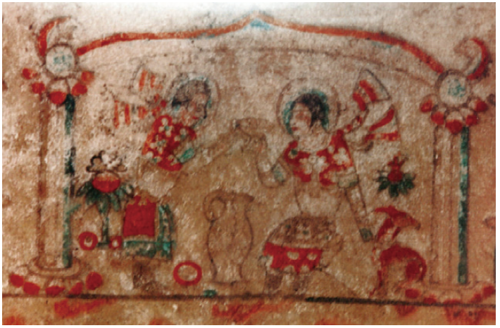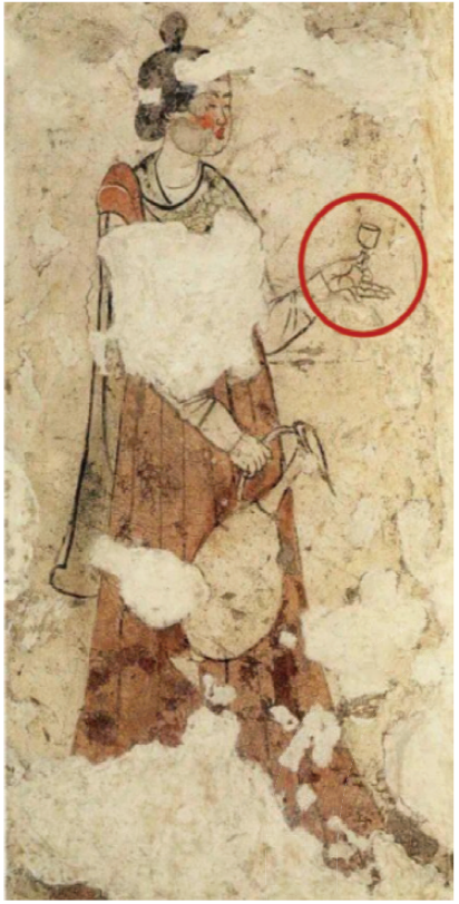 A type of Jin-silk with drinkers motif from the Northern Dynasties to the Tang Dynasty has been unearthed in locations such as Astana in Turpan, Xinjiang and Dulan in Qinghai. Academics have not conclusively determined these patterns’ origin and underlying meaning. Based on archaeological artefacts and related imagery, this article explores cultural connotations and religious beliefs to investigate further the source of the parent theme in the drinkers’ motif and the implicit East-West cultural exchange. After careful examination, the author found that the figures holding drinking vessels within the joint pearl roundels at the top of the Jin-silk originate from the Roman deity Lar. As both a household god and a god of roads and protection, this theme was favoured by Sogdians and subsequently absorbed by Chinese weavers, who produced the Jin-silk with drinkers motif as a specialized commodity catering to Sogdian needs. The emergence of such textile patterns reflects China’s digestion, absorption, and feedback of foreign cultures from the Northern Wei to Tang dynasties while also demonstrating the role of Sogdian merchants as intermediaries in Silk Road trade, religious dissemination, and cross-cultural exchange.