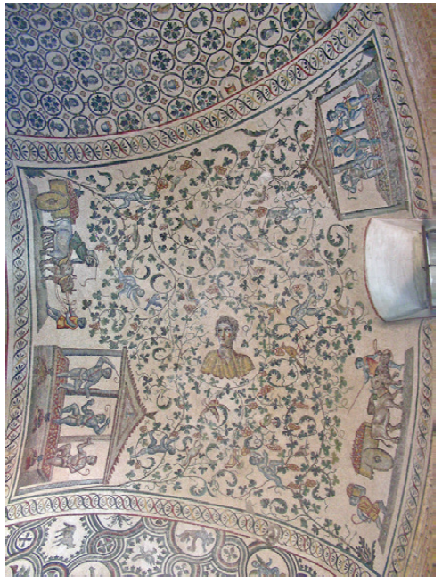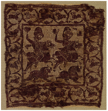 关键词: 对饮纹锦, 拉尔, 粟特商人, 狄俄尼索斯