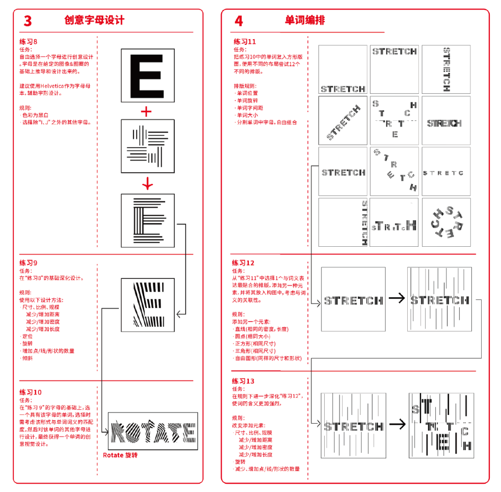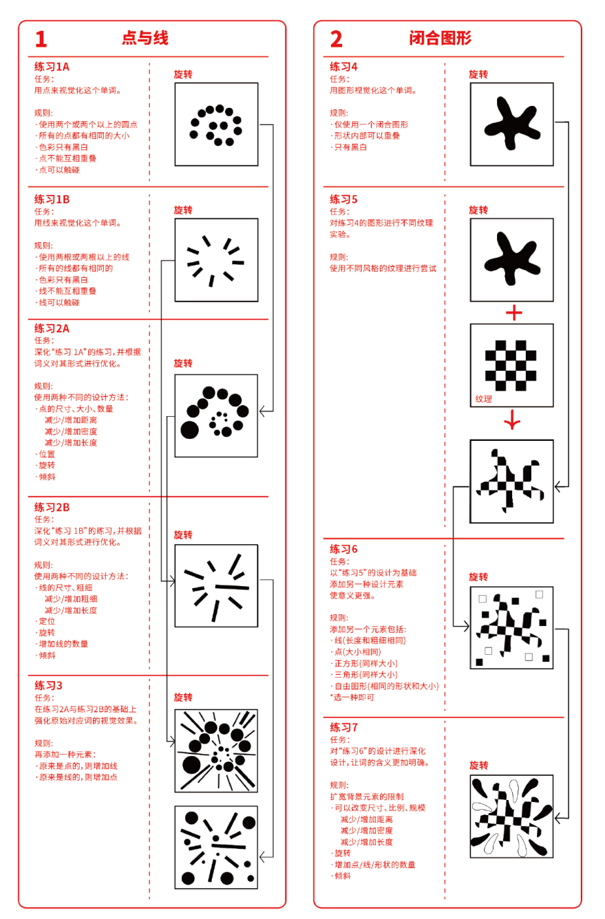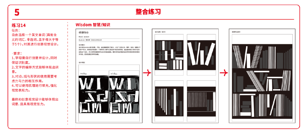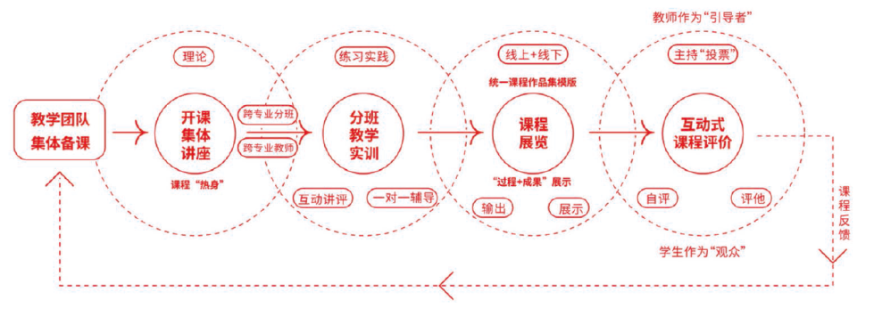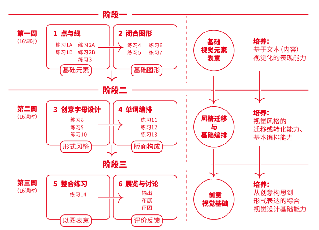 随着一系列技术革命与产业变革,设计的内涵与外延都随着时代的发展有所拓展,设计基础课程也应适应新时代艺术设计本科人才培养目标。北京服装学院艺术设计学院以设计学大类培养模式进行招生与培养,开设“形式基础:视觉”课程作为二维设计基础课程。本文通过梳理该课程的发展脉络,分析课程定位下的教学目标,并从三个阶段进行教学设计,搭建了“点、线与闭合图形—创意字母设计与单词编排—整合练习、展览与讨论”层层递进的课程框架。在此过程中,课程将创意视觉设计过程分解为14个小练习,深入浅出、由易到难,培养学生兼备“理性”工作原则与“感性”创意视觉的设计能力。同时,探索“形式基础:视觉”成为数智时代下设计学学科内各专业的“共同基础课”的实施路径与方法,以实现课程“最大公约数”的效力,希冀为当下的设计基础教学改革有所启发。
