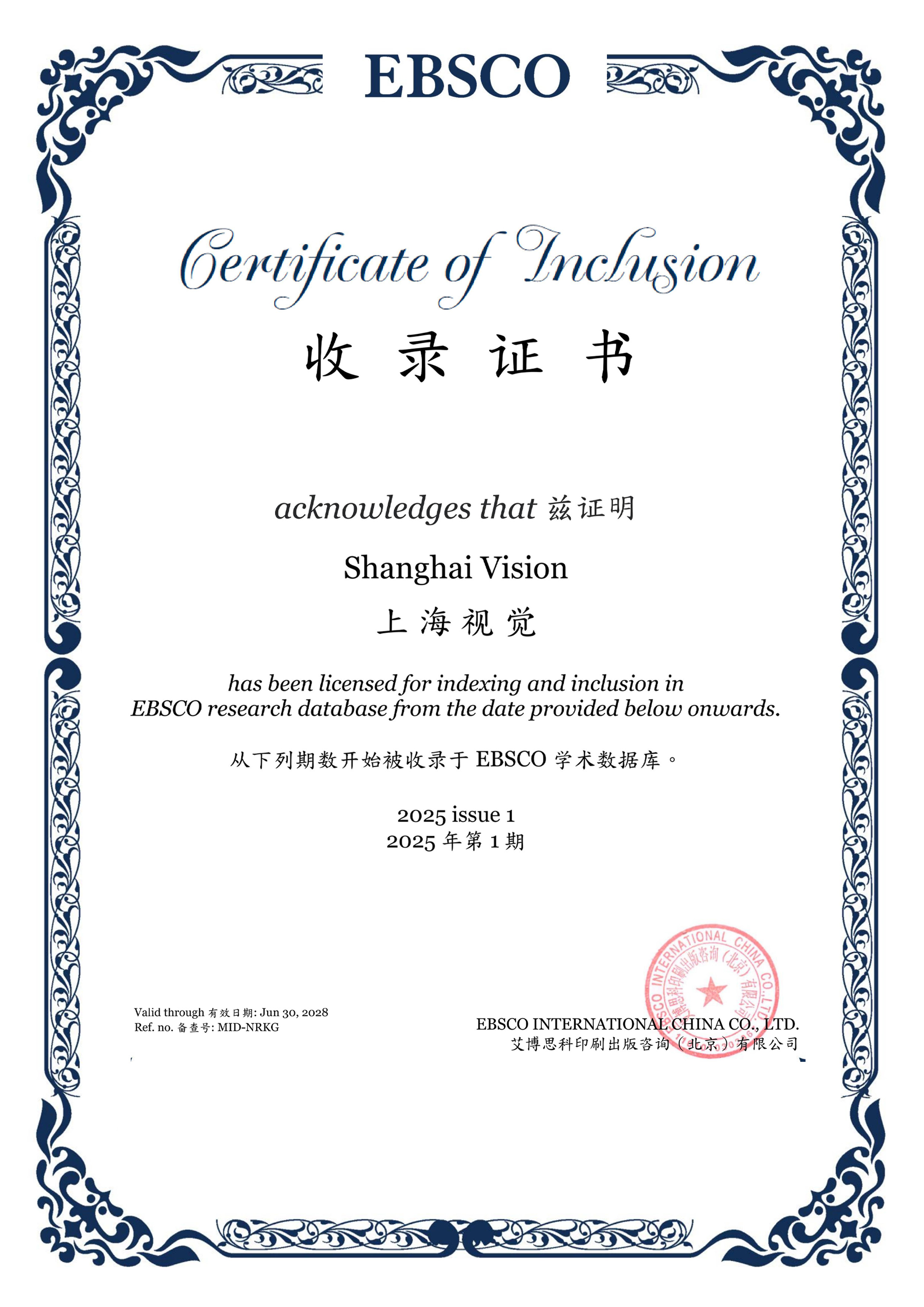 喜报!《上海视觉》学报国际化进程加速,跻身全球重要数据库EBSCO